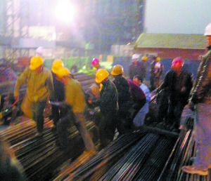 昨天下午5时30分许,位于清河桥西南角的北京强佑房地产开发公司二期工程的工地内,正在施工中的吊机上一大捆钢筋突然从10米高的半空坠落,将一名工人头部砸伤,肩胛骨当场骨折。