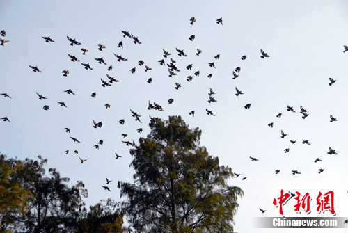 椋鸟群在汉可持续生活到12月份,视气温下降的情行,继续南迁。