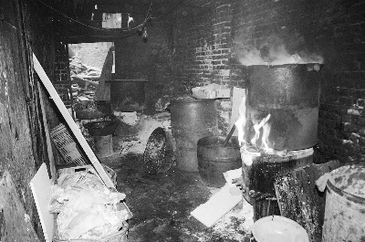 屋门口架着火炉,火上正用半截废旧油桶煮着生肉。而与火炉仅一门板之隔,外面就堆放着许多用来烧火的木柴和纸箱,很容易引发火灾。检查中,执法人员发现该窝点竟然用涂抹沥青的方式来“拔毛”。经过执法人员的仔细检查,在简易房旁边的一间黑屋子内找出了躲藏在内的老板,而这位老板现场拿不出任何的合法证照。“这些加工好的熟食都销售到哪里去?”“绿色市场。”“不可能,绿色市场就不卖熟食品。”工商人员当即拆穿了加工者的谎言。最后,工商执法人员在这处熟食加工黑窝点查获待加工的生肉500余斤、已加工好的熟食300多斤。(袁文波 杜进红)