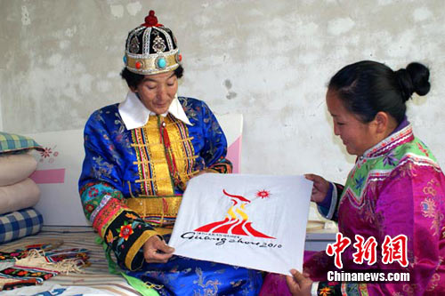 中新网乌鲁木齐11月11日电(孟根 李三山 王洪涛)广州亚运会开幕在即,距离遥远的新疆人也在期盼这继北京奥运、上海世博之后中国再次举办的宏大盛事。记者11日从新疆博湖县获悉,该县蒙古族刺绣女艺人为表达自己期盼的心情,运用蒙古族传统刺绣技艺秀出一副“五羊圣火”,期待亚运来临。