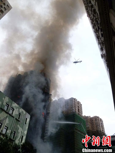 中新网上海11月15日电 (陈静 陈颖颖)15日下午,上海市中心静安区一幢正在进行外部修缮、28层高的教师公寓燃起大火,烟雾、气味弥漫周边方圆数百米。