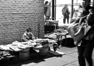 昨天下午6点多,记者赶到1号线地铁苹果园站C出口时,天色已经完全黑下来,地铁出口外一些黑车司机正在忙着拉活儿。路边的报摊上,两个小男孩正在埋头写作业,虽然环境喧闹却丝毫没有受影响。报摊旁边站着他们的妈妈李女士,则在照料报摊的生意。一些路过报摊的乘客停下脚步看看孩子,随后从孩子母亲的手里买走一两份报纸。