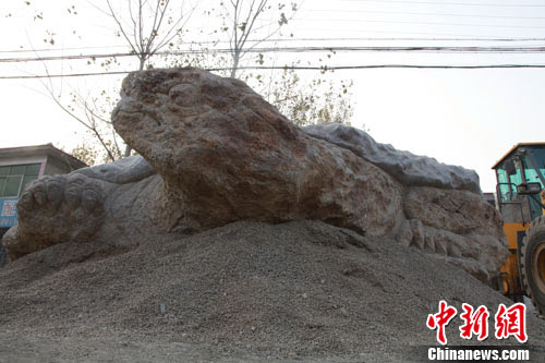 中新网徐州11月19日电 (嘉闻 拾冠之)今年9月,江苏徐州的王先生带领工人在一次劳作中,意外发现了一块45吨重的“巨龟”,并出资10万余元买回。由于体型庞大暂无地方安家,眼下, “巨龟”被主人放在104国道与310国道交叉大圆盘北一路边处,“守望”着国道上疾驰过往的车辆,好似在为大家祈福平安。