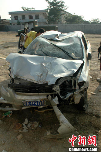 据陵水县交警支队事故中队中队长谢祖君介绍,该支队于26日凌晨零点24分接到报案,一辆雪佛兰轿车从陵水县文化路至中心大道行驶过程中,两次撞倒2辆摩托车后继续“飞”车,最终在滨河南路桃源大桥桥头冲下路面,撞断河边护栏后停下。接报后,陵水警方紧急出动,封锁肇事现场,7名伤者随后被120紧急送往陵水县人民医院进行急救。