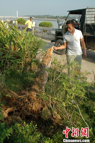 记者凌晨5时在事故现场的陵水县城桃源大桥桥头看到,河边的一棵直径约15厘米的树被拦腰撞断,河堤护栏也被撞断了约2米宽。现场满地油污,撞坏的汽车零部件洒落一地,地上还残留着部分血迹。事故现场目击者描述,肇事的雪佛兰轿车像疯了一样,一路疯撞致多名无辜市民受到伤害。