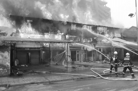 由于失火的房屋都是一两层楼的木结构房屋,熊熊燃烧的大火,从一楼一直燃到房顶。