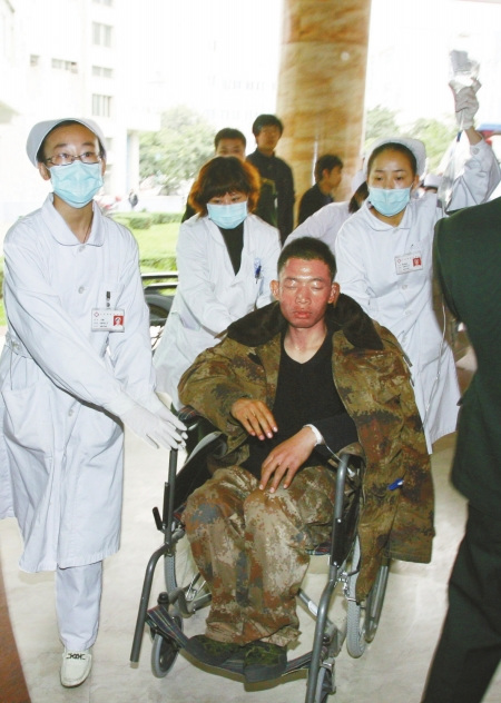 这名重伤员是一名51岁的藏族女同胞,名叫巴珠(音)。经过几名专家的诊断,她的全身烧伤面积达到95%,其中80%为深三度烧伤,属于特重型烧伤,随时都有生命危险。据烧伤科医生谭加韬介绍,巴珠是道孚县当地群众,协助灭火时受伤。(刘晓娜)