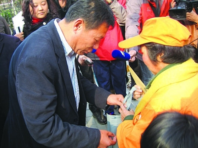 7日,本报曾报道了南京女环卫工杜孙氏寒风中赤手掏阴沟垃圾的消息,南京电视台、央视《24小时》、《共同关注》也对此进行了报道。昨天下午,南京市城管局局长许卫宁将围巾、手套、洗面奶、护手霜及一千元现金作为慰问品,送给了杜孙氏。他将围巾戴在了老人脖子上,对老人辛苦、敬业的工作表达了感动与支持。“老人家用双手掏阴沟的垃圾,让我们感动很惭愧。”许卫宁说,城管局有责任和义务来关心、爱护环卫工,下一步他们将通过提高定额标准和机扫率,逐步改善环卫工的作业条件。“大家比较关注的五险一金的问题,是我们明年工作努力的目标。”