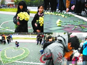 昨日中午11点,上海复旦大学本部、南区、北区的食堂前拉起了“向张宁海同志致以深切哀思,英雄一路走好”横幅,同学们陆续向13日凌晨在营救到黄山户外运动的复旦学生牺牲的黄山民警张宁海献花祈福。