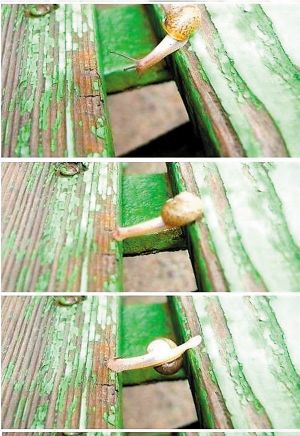 一组图片展现了一只最励志小蜗牛。让网友佩服的是,这只不起眼的小蜗牛,从一根木杆跨至另一根木杆,它的顽强精神感动了网友。