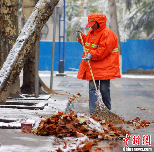 中新网武汉12月15日电 (记者 张芹)随着14日晚漫天飞舞的雪花,武汉今年第一场雪如期而至。15日,尽管预报为中到大雪,但此次降雪时间持续较短,路面未形成深厚积雪,对市民生活影响不大。而伴随着这场降雪,武汉也结束了“百年最长秋天”,正式入冬。