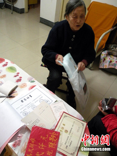 中新网郑州12月15日电(王帅)河南郑州的七旬老人陈曼玲,12年来不顾自身的困难与病痛,一直坚持向有困难的人们捐款献爱心。记者14日走访了这位老人。