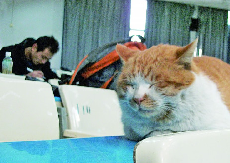 目前看来,这只流浪猫状况良好,估计仍将一如既往地扮演它的“山大神猫”角色,继续听课、午休、上自习……