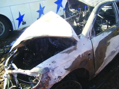 记者昨晚从辖区交警队了解到,目前小轿车上被烧死的两人是男是女还分不清楚,出勤交警正在寻找有价值的信息,核实死者身份,事故原因正在调查中。 (通讯员 刘贵、记者 方荣刚 文/摄)