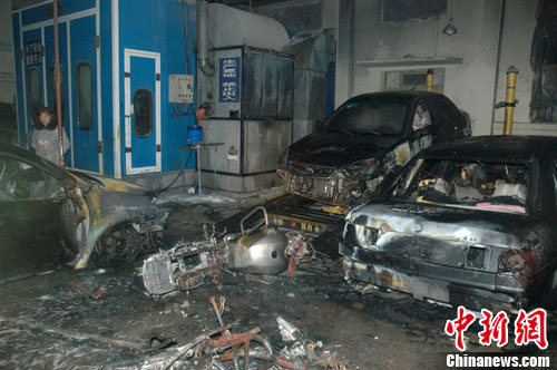 该修理厂的值班人员向阳说,当晚厂内只剩他和另外一名同事值班,19时15分许,两人同去吃饭,约10分钟回来后便发现修理厂烤漆车间旁的停车棚起火。两人遂报警求救。