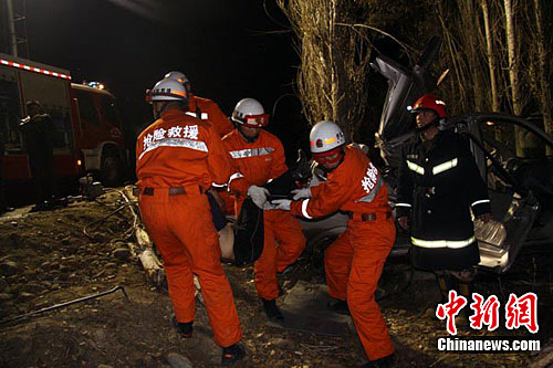 根据现场情况,消防人员一部对车内被困人员进行心理安抚,通过对话,随时掌握被困者的情况,以便及时应对;另外破拆救援小组立即利用破拆器材,对严重变形的车体进行破拆,尽快就出被困人员。救援人员首先利用液压扩张器将凹凸部分撑开,随后利用金属切割锯对车体进行破拆。经过消防官兵的努力,驾驶室被困的4名伤者被救出,并及时被120急救车送往医院进行抢救。