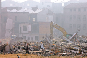 后湖众多的拆迁和在建工地是灰尘的主要来源。