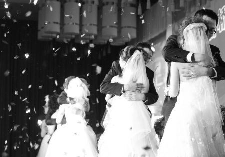 这是一场精心筹备的集体婚礼,10对新人来自同一家工程建筑公司,婚礼所有环节由公司一手操办。