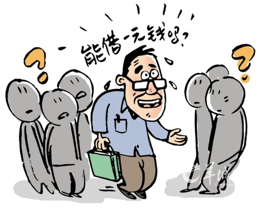 良久,林教授终于鼓起勇气,开口向一名和善的男士“借钱”:“你好,我的钱包没带,能借我1元坐车吗?”对方狐疑地扫了他一眼,未应允;林教授赶忙拿出挎包里的教材,连声说:“我不是骗子,我是大学老师!”男子依然一脸怀疑,但还是掏出了1元钱。未几,平日很少坐公交的林教授猛然想起,“现在的公交车都装空调了,2元才能搭上车”!林教授硬着头皮再次向那男子多要1元钱……