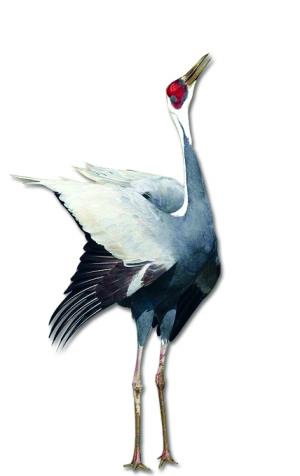 白枕鹤体形与丹顶鹤相似,略小于丹顶鹤,而大于白头鹤。上体为石板灰色。尾羽为暗灰色,末端具有宽阔的黑色横斑。该鸟为稀有的笼养观赏鸟类,主要繁殖在黑龙江、吉林等省或更北的广大地区,冬天部分迁徙到江苏、安徽、江西等省的湿地越冬。白枕鹤为中国国家二级保护珍禽。