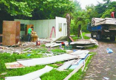 清凉山公园拆除活动板房。 本报记者 姚远摄