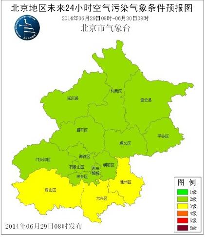 而日照较强,气温较高,有利于光化学反应发生,北京市气象台今晨发布的空气污染气象条件预报显示,今天白天,北京大部分地区空气污染气象条件等级为2级。今天夜间,北京地区扩散条件转差,空气污染气象条件等级为2-3级。