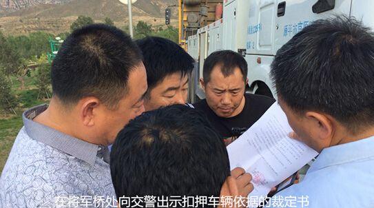 陕西法院警车押送31辆车 山西境内遭数十交警拦截