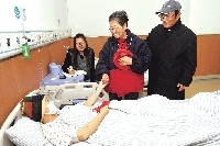 “听说你要结婚了,祝你们白头偕老。”昨日上午11点,一对白发苍苍的夫妇向躺在床上的范会香送上了祝福的红包和话语。他们是今年已经结婚54周年的画子信夫妇,住在西区的他们转了3趟车,一路打听来到了病房。