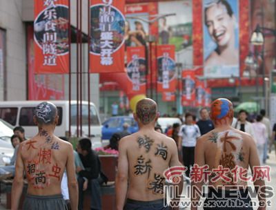 中新网11月16日电 据新文化报报道,成为吉林长春人体广告第一人的车红卫,现在已经改名叫车正阳——车正阳在沈阳发展他的人体广告事业。昨天他又出惊人之举,在某门户网站建博客,并在上面发布了“全裸征婚启事”,要寻找喜欢行为艺术的志同道合女子。“全裸征婚”