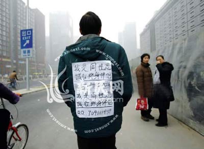 12月5日,一位名叫“晓天”的同性恋者背挂“我是同性恋,诚征终身伴侣”的牌子想进清华大学征伴侣,遭到门卫阻拦,晓天便向清华大学校长办公室投诉,称清华大学“歧视”同性恋。学校有关人员明确否认清华大学歧视同性恋者,晓天的举动受到很多网友、包括同性恋者的质疑和反对。