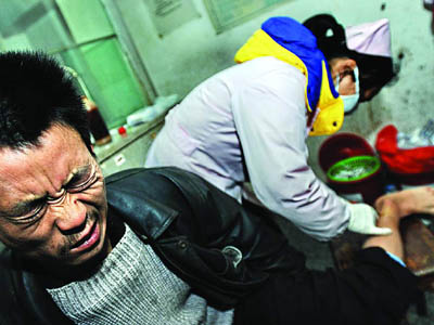56岁的方建军是在振兴路上10点多钟被咬着的。“当时我吃完早餐就在路边与朋友聊天,突然听见对面一阵叫声,一条狗就咬到了一个女子(记者查到是17岁的张灯)。那是一条很普通的土狗,咬后就跑了。我们都以为是哪个家里养的正常犬。我接着与朋友聊天,没想到10多分钟后,狗就咬到我身上来了,这时,我才想到这可能是条疯狗。”