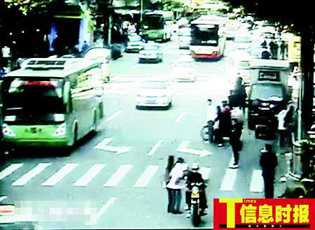 记者赶到现场时,伤者已被送往医院。据两位现场目击者称,昨天上午11时30分,一辆摩托车由南向北在人民北路辅路上狂飙,其后紧追着一黑色轿车。当行驶至流花宾馆路段时,前面有一辆出租车,轿车车头右拐准备超过出租车,但是撞飞右前方的一名拉着空车的运货工,运货工被车撞飞4米后倒地,但黑色轿车没有停下来,而是继续追摩托车。运货工额头、左小腿和右大腿严重受伤,躺在地面难以起来,地上留着两摊血迹,轿车车头撞坏的碎片撒落在地。当时,人民北路流花宾馆路段两边人行道站了很多群众,都被轿车和摩托车的车速惊呆,有人马上报警。郭某很快被120车送往市第一人民医院抢救。数名警察迅速赶到现场,向北追踪小轿车和摩托车,摩托车车手不久被抓回事故现场。