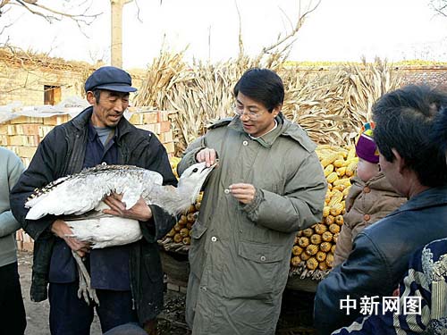 在献县垒头乡小辛庄村村民李继钢家,孟教授见到一只个头很大的鸟,受伤倒在地上。他发现这是一只成年雄性大鸨,经过检查发现它的身上有3处受伤的部位,分别为翅膀、腿部成撕裂伤,胸部成严重的撞击伤。