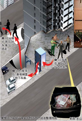 银行所在大楼的地下车库有两个出口,其中一个出口通向银行背后的华谊街,另一个通向银行另一侧。据华谊街上一士多的老板介绍,下午3点多的时候,3名男子慌慌张张地从银行的地下车库中跑了出来,其中一个男子还拿着一把手枪,另外一个男子拿着一个包。很快,3人就从白云花园旁一个出口消失了。警察赶到后,她才知道银行内有储户被劫。