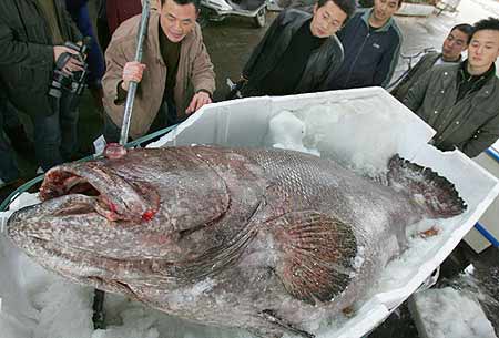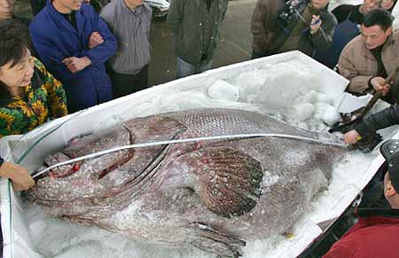 2007年1月22日下午,一条重达340公斤的大鱼运抵温州市菜篮子水产批发市场,庞大身躯吸引了众人围观。从鱼嘴到鱼尾全长2.4米,胸围最宽处有2米,单单一只眼窝的直径就有7厘米。