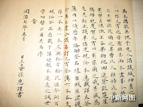 据了解,该书是钱王三十二世孙钱惠为祭钱王于清代同治七年手书而成,距今已有一百三十八年的历史。