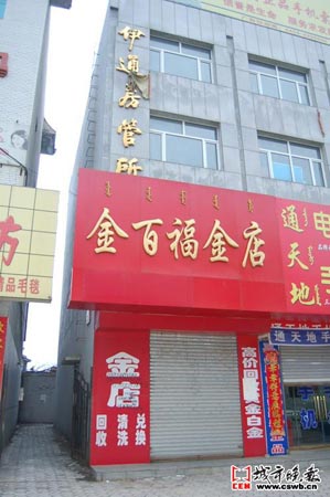 该金店是金百福全国连锁店伊通分店,营业大约3年了,老板经常调换。该金店老板透露,营业厅内有监控摄像装置。一营业员回忆说,两歹徒操本地口音,身穿黄色服装。
