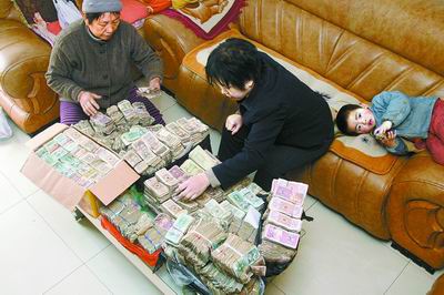在陈先生的家里,一摞摞的零钱摆满了茶几,每一摞都有40厘米那么厚。陈先生说:“这些是他母亲和姐姐整理了5天才整理出来的,这还只是一小部分。”随后陈先生拿出3个编织袋和5个大大小小的箱子,记者一看,里面全是零钱。