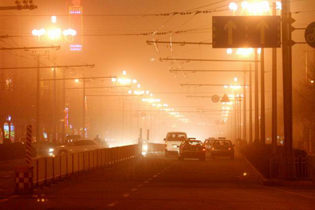 记者27日晚在市区看到,尘土被阵风吹起,废弃的包装袋扶摇而上旋舞在天空。晚9时30分,金城已经是通黄一片,而街边的路灯在沙尘的折射下变成了暗黄色,短短十几分钟后,沿街商铺的窗台上已经盖上了一层薄薄的黄土,浮尘呛鼻,行人面对这突如其来的沙土,只有掩鼻而行,尘土飞扬的天气使人感到胸部憋闷,呼吸困难,汽车也开着防雾灯小心行驶。
