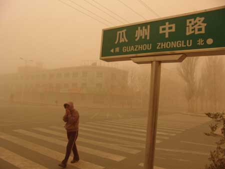 记者从酒泉和嘉峪关两市看到大部分上班族放弃骑自行车改乘公交车。昨日下午1时,瓜州县政府通报由于大风沙尘暴,312国道造成汽车相撞事故,死亡2人,伤7人。据悉,受沙尘暴影响,嘉安高速公路在昨日12时全线封闭。