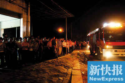 昨天傍晚6时30分,记者赶到现场时,通往起火化工厂的罗村路口已被警方封锁,几百名工人都挤在警戒线外观望。在警戒线外,记者可看见起火厂房内一根直径数米的烟柱伴随着火光直往上冲,烟雾顺着风不时往西北方向飘去。