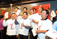 昨天,汤军也跟着这些白衫客们一起挥舞手臂,高喊“于丹认错”的口号,不过他穿的是一身休闲西装,而这些反对者也不再身穿有手写字体的白T恤,而是改成了批量印制、生产的“文化衫”。(赵阳)
