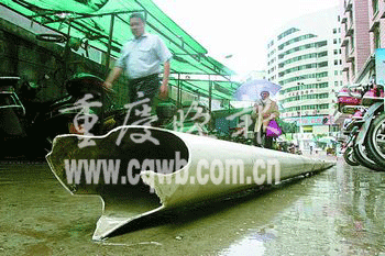 昨日,重庆永川区西大街阳光花园小区楼外,一根从8楼垂下的塑料排水管突然脱离外墙,径直砸向与小区仅一墙之隔的成渝铁路线。“啪!”长约25米、直径约20厘米的排水管,重重击打在铁轨动力线上,折成“V”字形悬在半空,导致成渝铁路中断大约半小时,至少两趟列车被延误。