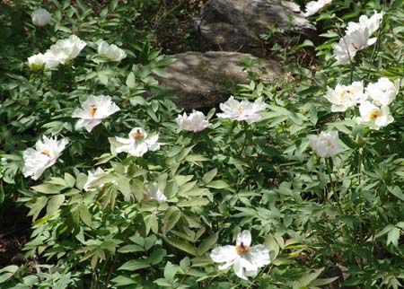 4月22日,本报记者约了孟丽教授,到关山景区进行关山野牡丹的实地采访。记者发现成片的野牡丹逐地分布,风中摇曳煞是好看,拥拥簇簇野生牡丹小苗遍地都是。孟教授边拿者牡丹图谱边介绍着关山野牡丹与其他地区发现的野牡丹和栽培牡丹的区别。“关山野牡丹当属凤丹品种系列,但与其他牡丹相比叶较细窄、肥厚,更重要的是花形与济源王屋山上的稷山牡丹明显不是同一品种”。记者看到关山野牡丹花色洁白莹玉,花形有单层和多层,更有甚者出现了花心出现了紫色和蓝色变异。牡丹单枝独朵较为常见,关山野牡丹出现了并蒂花朵更是罕见。据孟教授介绍,河南是牡丹的重要的繁衍中心,丰富的牡丹资源构成了强大的牡丹中原群落。在关山发现了如此大面积的野生牡丹群落在河南省内还是首次。