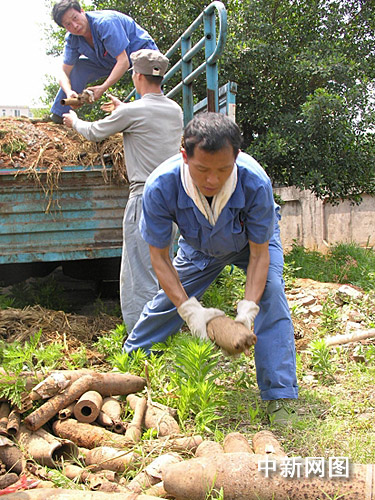 这次销毁的废弃炸弹、手榴弹约有四、五百枚,直径最大的超过二十厘米,最长的有七、八十厘米,多是锈迹斑斑,但亦有个别还很簇新的。在南华禅寺发现的那批手榴弹,从外观推测是木柄式,由于埋在地下时间长达几十年,木柄已经全部腐烂,弹体也锈蚀缺损得非常厉害。