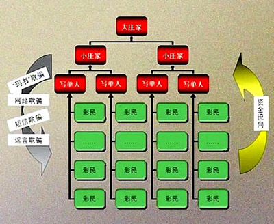 雷雨生,是沈阳市公安局东陵分局治安专案大队长期查办“六合彩”赌博案件的办案人员。他说,“六合彩”众多玩家没有赢钱的,大大小小的“庄家”没有输钱的。“六合彩”非法赌博组织很像非法传销组织,形成了以大小“庄家”为塔尖、众多玩家为塔底的金字塔。玩家少了,那些庄家怎么赚钱?所以,无数大小庄家拼命发展玩家,以便从“小庄”升为更大的“庄”。于是,村民的春耕钱、卖粮钱纷纷涌入到大小“庄家”手里。赢钱的想赢得更多,输钱的想捞回来,形成恶性循环。