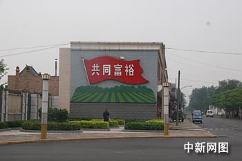 中新网吕梁5月21日电 (吉翔)在吕梁山东麓、汾河西畔距离汾阳古城不远的地方,有一个解放以来一直是全国农业战线先进典型的贾家庄村,在这里,记者一进村口就可以看到醒目的“共同富裕”四个打字,的确,在这短短的四个字里浓缩了贾家庄人的共同志向。