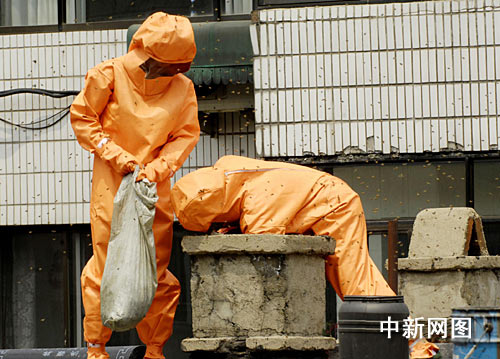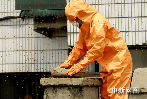 中新网延吉6月4日电(记者 宁秀英)4日,两名做防水的工人在吉林延吉市一小区施工时不小心碰到了一个建在废弃烟囱里的巨型马蜂窝,结果受到上万只马蜂的集体攻击,被紧急送往医院治疗。