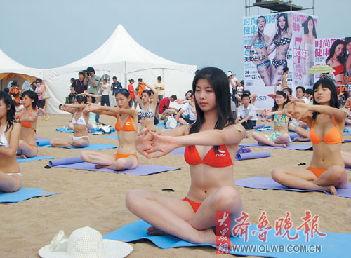 13日,为了庆祝北京申奥成功6周年,青岛举行了环保迎奥运展示等一系列的庆祝活动。为了给“帆船之都”营造时尚氛围,还在青岛石老人海水浴场举行了千人比基尼派对。