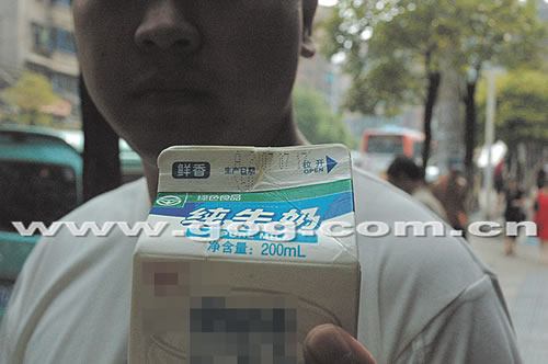据陈先生介绍,14日晚8点左右,他和妻子在大营路一商店购买了两盒200毫升装某品牌纯牛奶,妻子当时就喝了一盒。回家后,妻子突然感觉肚子痛,并出现腹泻现象。“当晚,我爱人拉了3次肚子,输了液才止住。”陈先生告诉记者,当晚,他从冰箱里将同时购买的另外一盒牛奶拿出,品尝后发现纯牛奶带有酸味,这时他才发现,盒子上的生产日期居然是“2007年7月17日”。